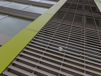 Em função de sua estabilidade e versatilidade, o HPL Pertech Exterior pode ser cortado em réguas instaladas em sistemas de brises, proporcionando excelente aparência. Nesses sistemas de brises, o HPL Pertech Exterior é utilizado com o propósito de proteção solar, ventilação ou como elemento estético. Como são instalados separadamente da estrutura do edifício, também contribuem como um isolamento térmico.